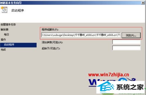 6、选择要打开的程序,比如这里我选择我要打开的千千静听程序,参数可以不填,一般是用来传递到软件里的,点击下一步;