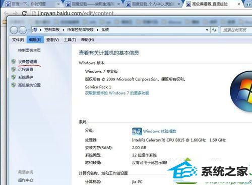 今天和大家分享一下win10系统笔记本插耳机没有声音问题的解决方法,在使用win10系统的过程中经常不知道如何去解决win10系统笔记本插耳机没有声音的问题,有什么好的办法去解决win10系统笔记本插耳机没有声音呢?小编教你只需要1、检查驱动是否有问题;右键单击计算机->属性,选择设备管理器; 2、检查音频驱动;点击图中红线所示的部分,查看相应的驱动是否有感叹号之类的符号,如果有,重装驱动,然后重启;就可以了;下面就是我给大家分享关于win10系统笔记本插耳机没有声音的详细步骤:: 具体方法如下: 1、检查驱动是否有问题;右键单击计算机->属性,选择设备管理器;