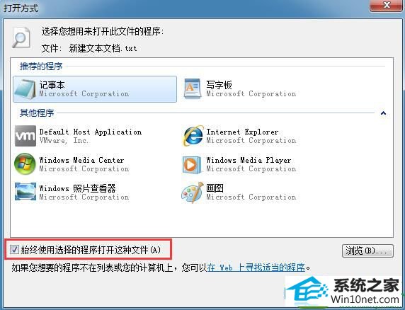 3、然后勾选“始终使用选择的程序打开这种文件”并点击确定;