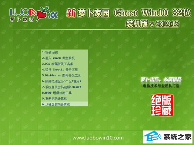 萝卜家园Win10 32位 精选装机版 2019.12使用稳定可靠的优化方案,涉及服务、注册表、启动项等方面。安装盘经过众多电脑装机人员安装测试,稳定性兼容性都非常好,通过数台不同硬件型号计算机测试安装均无蓝屏现象,硬件完美驱动。系统经过优化,启动服务经过仔细筛选,确保优化的同时保证系统的稳定,采用万能GHOST技术,全自动无人值守安装,安装系统过程只需5-8分钟。